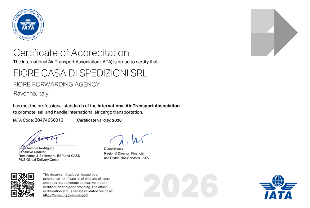 I.A.T.A. Oltre 40 anni di esperienza nel trasporto aereo, hanno arricchito la conoscenza dei servizi cargo che vengono affidati alle maggiori compagnie aeree commerciali, sia su territorio nazionale che in ambito internazionale.
